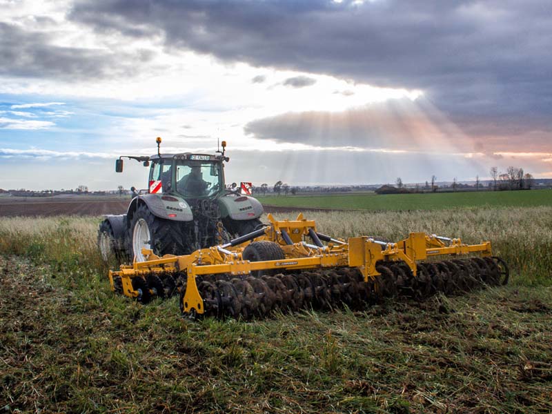 Die Disc-O-Mulch R ist eine kompakte Kurzscheibenegge, ideal für die flache Bodenbearbeitung, den Stoppelsturz, die Einarbeitung von Zwischenfrüchten und organischen Düngern sowie die Saatbettbereitung. Dank ihrer aggressiven Scheibenstellung und der Elastomer-Sicherung sorgt sie für eine effiziente Mischung und optimale Bodenstruktur