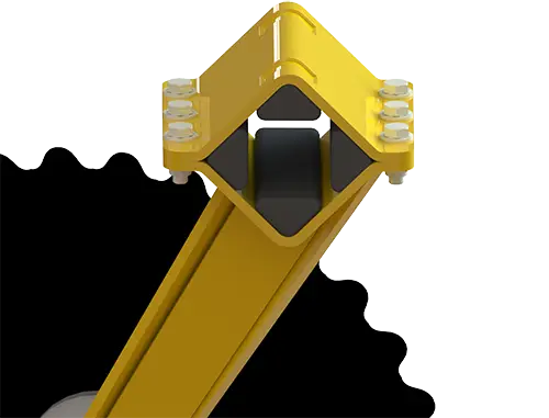 Die Scheiben der Serie R sind per Einzelaufhängung an der Maschine montiert für eine gleichmäßige Tiefenführung jeder Scheibe und einen verbesserten Einzug. Der Scheibenhalter ist mit Dreieckigen Elastomer Gummilagern auf den Rahmen geklemmt, die eine größere Rahmenaufstandsfläche und eine höhere Widerstandskraft bieten ohne sich zu Verformen. Die Robuste und Wartungsfreie R-Lagerung Ø72mm leistet eine hohe Zuverlässigkeit und einfache Wartung der Maschine.